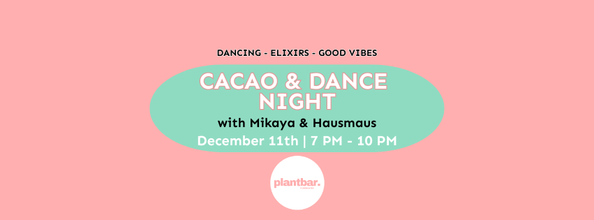 7:00 pm - 10:00 pm Cacao & Dance Night ft. Mikaya & Hausmaus December 11 @ 7:00 pm - 10:00 pm Cacao & Dance Night ft. Mikaya & Hausmaus